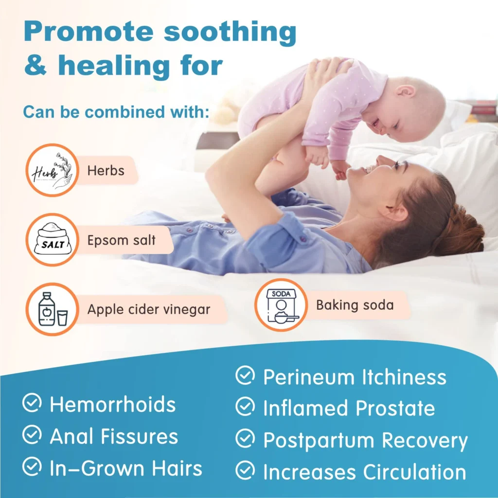 ✓ Reduces Swelling Naturally: Soaking in warm water while seated helps reduce postpartum swelling in all the right places, giving your body the gentle therapy it needs to heal faster.